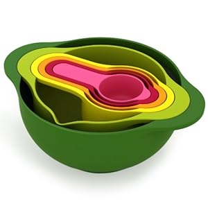 I picked up this set in the UK, before Joseph Joseph was readily available in the United States and absolutely love it. The design is functional and saves a lot of space in the kitchen. I generally leave the set stacked on my counter. I've washed the set in the dishwasher countless times and it's holding up well. My favorite feature is the rubber, non-slip ring on the bottom of the dark green bowl. Be careful to check the sizes when ordering as the "large" mixing bowl isn't really as "large" as one would think. For a small kitchen, however, the set works wonderfully.