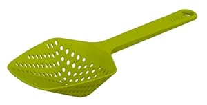 This colander / scooper has a multitude of evenly spaced holes that are just the right size - for a cat litter box. That's right, I apologize Joseph� for buying this awesome strainer for my cat. I was just tired of so many small clumps falling through the slats of the poorly designed litter scoops available in retail and pet stores. My kitten goes frequently as you would expect from a growing animal, so the clumps are rarely solidified enough to come out unbroken. The pet scoop was dropping particles that prevented the clean up from really cleaning the sand. Enter the J�. The holes are perfectly sized and plentiful enough to get even the small particles of waste while the sand flows through back to the box. It has a long handle and the rigid design lets you literally scrape the sides of the box to get it clean. It is the cat litter scoop I have always wanted, and if your cat likes to sleep on the bed you should want it too. Joseph� - sell it in pet stores! Send me a royalty check!