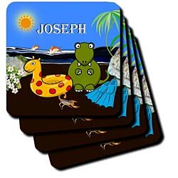 Amazon.com: Joseph - Tyrannosaurus Rex At The Beach - Set Of 4 Coasters - Soft: Kitchen & Dining Other Resource